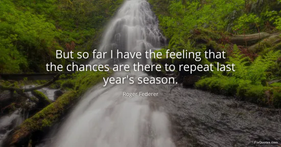 Federer, Roger. "But so far I have the feeling that the chances are there to repeat last year's season." FixQuotes. Accessed February 2, 2026. https://fixquotes.com/quotes/but-so-far-i-have-the-feeling-that-the-chances-136310/.