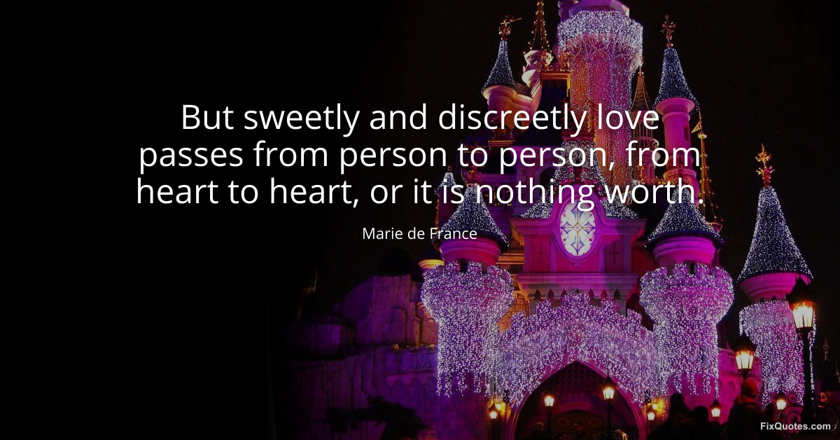 France, Marie de. (2026, January 15). But sweetly and discreetly love passes from person to person, from heart to heart, or it is nothing worth. FixQuotes. https://fixquotes.com/quotes/but-sweetly-and-discreetly-love-passes-from-150810/