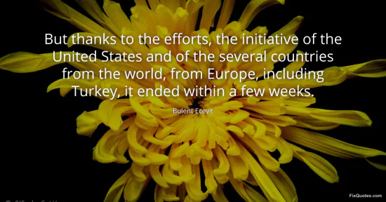 Ecevit, Bulent. "But thanks to the efforts, the initiative of the United States and of the several countries from the world, from Europe, including Turkey, it ended within a few weeks." FixQuotes. January 17, 2026. https://fixquotes.com/quotes/but-thanks-to-the-efforts-the-initiative-of-the-38785/.
