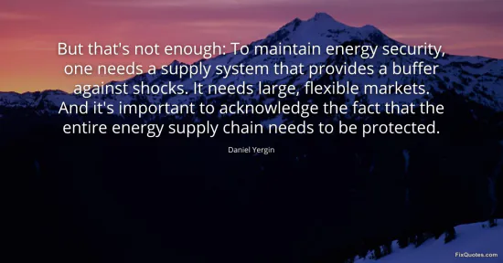 Yergin, Daniel. (2026, January 17). But that's not enough: To maintain energy security, one needs a supply system that provides a buffer against shocks. It needs large, flexible markets. And it's important to acknowledge the fact that the entire energy supply chain needs to be protected. FixQuotes. https://fixquotes.com/quotes/but-thats-not-enough-to-maintain-energy-security-52546/