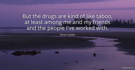 Suplee, Ethan. (2026, January 15). But the drugs are kind of like taboo, at least among me and my friends and the people I've worked with. FixQuotes. https://fixquotes.com/quotes/but-the-drugs-are-kind-of-like-taboo-at-least-164641/