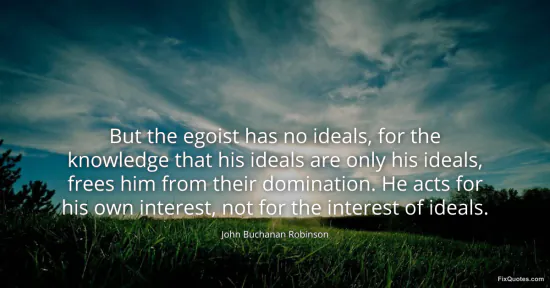 Robinson, John Buchanan. (2026, January 17). But the egoist has no ideals, for the knowledge that his ideals are only his ideals, frees him from their domination. He acts for his own interest, not for the interest of ideals. FixQuotes. https://fixquotes.com/quotes/but-the-egoist-has-no-ideals-for-the-knowledge-55966/
