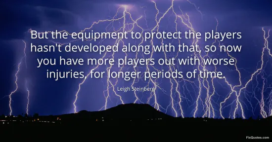 Steinberg, Leigh. (2026, January 15). But the equipment to protect the players hasn't developed along with that, so now you have more players out with worse injuries, for longer periods of time. FixQuotes. https://fixquotes.com/quotes/but-the-equipment-to-protect-the-players-hasnt-72268/