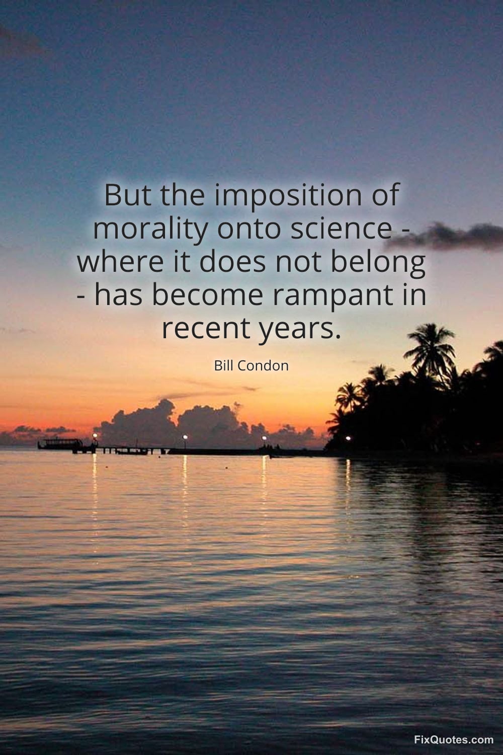 Condon, Bill. (2026, February 16). But the imposition of morality onto science - where it does not belong - has become rampant in recent years. FixQuotes. https://fixquotes.com/quotes/but-the-imposition-of-morality-onto-science-138766/