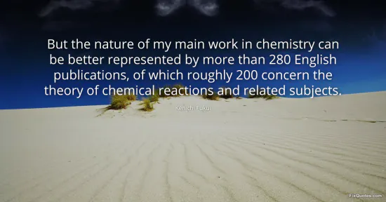 Fukui, Kenichi. "But the nature of my main work in chemistry can be better represented by more than 280 English publications, of which roughly 200 concern the theory of chemical reactions and related subjects." FixQuotes. January 16, 2026. https://fixquotes.com/quotes/but-the-nature-of-my-main-work-in-chemistry-can-87063/.