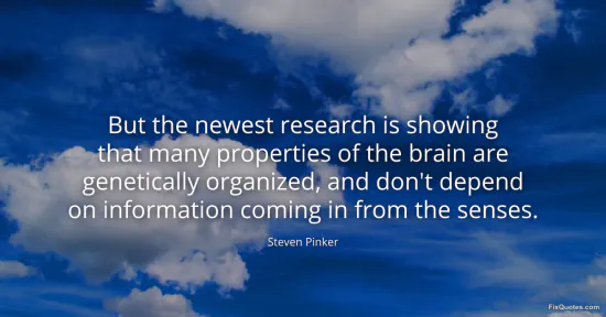 Pinker, Steven. (2026, January 15). But the newest research is showing that many properties of the brain are genetically organized, and don't depend on information coming in from the senses. FixQuotes. https://fixquotes.com/quotes/but-the-newest-research-is-showing-that-many-157396/