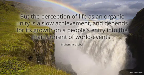 Iqbal, Muhammed. (2026, January 16). But the perception of life as an organic unity is a slow achievement, and depends for its growth on a people's entry into the main current of world-events. FixQuotes. https://fixquotes.com/quotes/but-the-perception-of-life-as-an-organic-unity-is-115796/