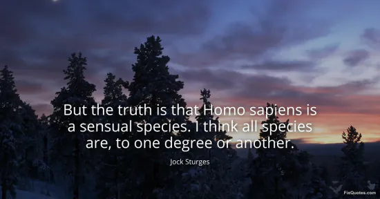 Sturges, Jock. (2026, January 18). But the truth is that Homo sapiens is a sensual species. I think all species are, to one degree or another. FixQuotes. https://fixquotes.com/quotes/but-the-truth-is-that-homo-sapiens-is-a-sensual-4105/