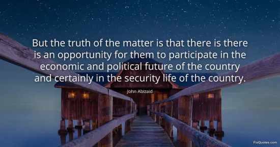 Abizaid, John. (2026, January 18). But the truth of the matter is that there is there is an opportunity for them to participate in the economic and political future of the country and certainly in the security life of the country. FixQuotes. https://fixquotes.com/quotes/but-the-truth-of-the-matter-is-that-there-is-6579/