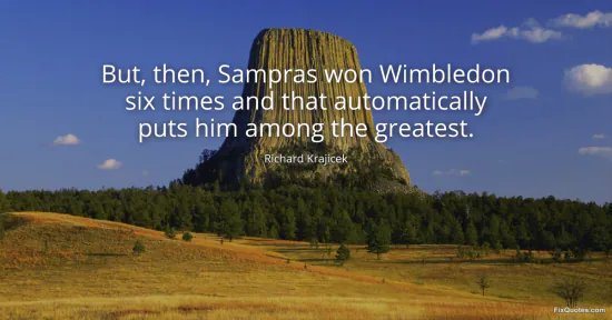 Krajicek, Richard. (2026, January 16). But, then, Sampras won Wimbledon six times and that automatically puts him among the greatest. FixQuotes. https://fixquotes.com/quotes/but-then-sampras-won-wimbledon-six-times-and-that-105781/
