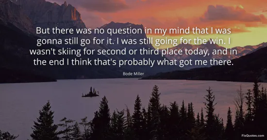 Miller, Bode. "But there was no question in my mind that I was gonna still go for it. I was still going for the win. I wasn't skiing for second or third place today, and in the end I think that's probably what got me there." FixQuotes. January 17, 2026. https://fixquotes.com/quotes/but-there-was-no-question-in-my-mind-that-i-was-49333/.