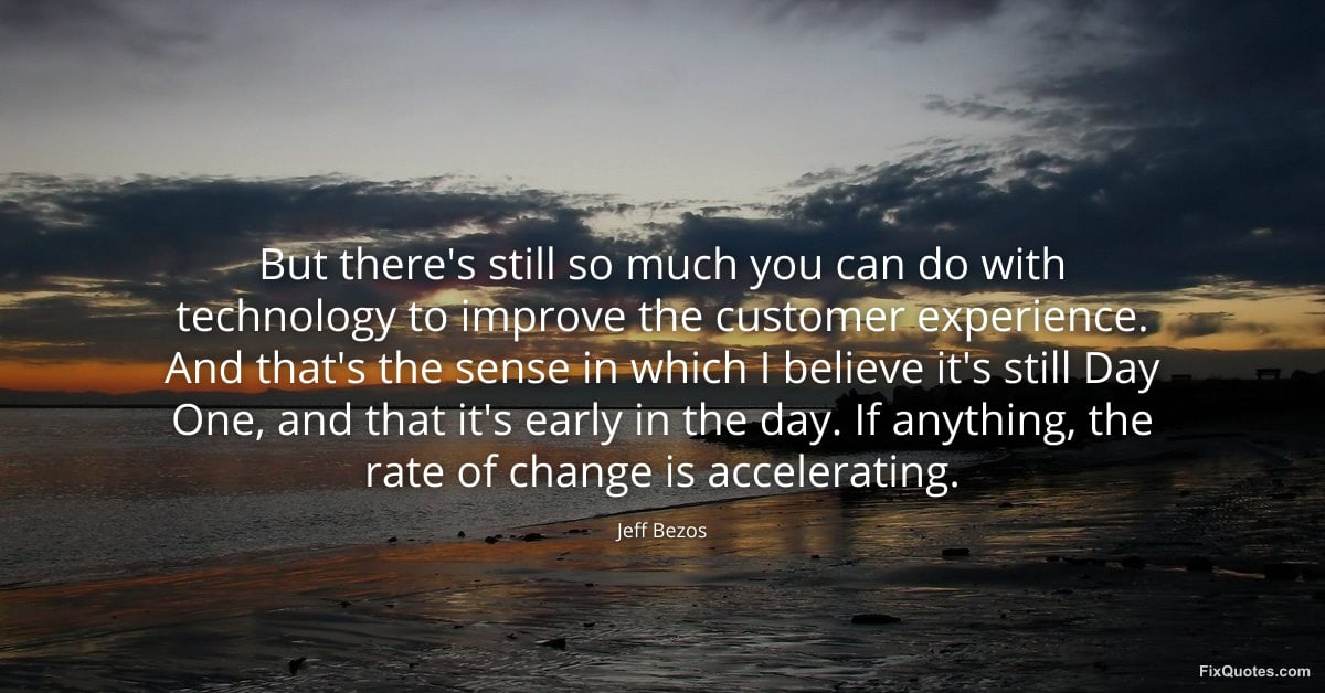 Bezos, Jeff. (2026, March 25). But there's still so much you can do with technology to improve the customer experience. And that's the sense in which I believe it's still Day One, and that it's early in the day. If anything, the rate of change is accelerating. FixQuotes. https://fixquotes.com/quotes/but-theres-still-so-much-you-can-do-with-186498/