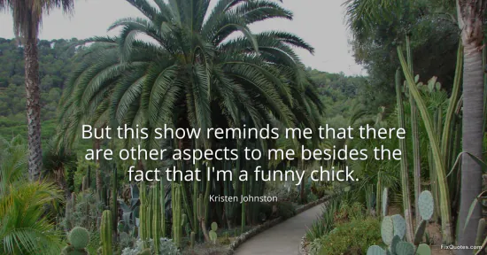 Johnston, Kristen. (2026, January 17). But this show reminds me that there are other aspects to me besides the fact that I'm a funny chick. FixQuotes. https://fixquotes.com/quotes/but-this-show-reminds-me-that-there-are-other-60914/