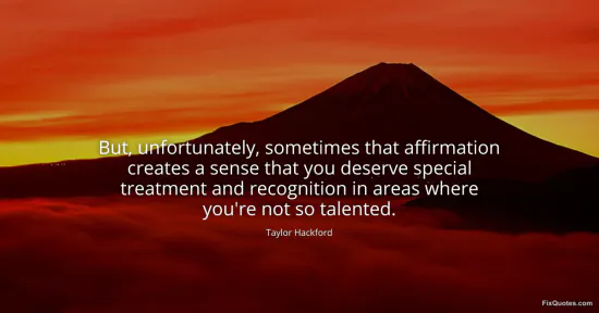 Hackford, Taylor. (2026, January 16). But, unfortunately, sometimes that affirmation creates a sense that you deserve special treatment and recognition in areas where you're not so talented. FixQuotes. https://fixquotes.com/quotes/but-unfortunately-sometimes-that-affirmation-107197/