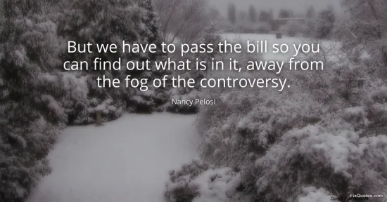 "But we have to pass the bill so you can find out what is in it, away from the fog of the controversy." FixQuotes, 13 Jan. 2026, https://fixquotes.com/quotes/but-we-have-to-pass-the-bill-so-you-can-find-out-958/. Accessed 12 Feb. 2026.
