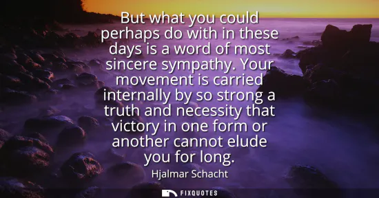 "But what you could perhaps do with in these days is a word of most sincere sympathy. Your movement is carried internally by so strong a truth and necessity that victory in one form or another cannot elude you for long"