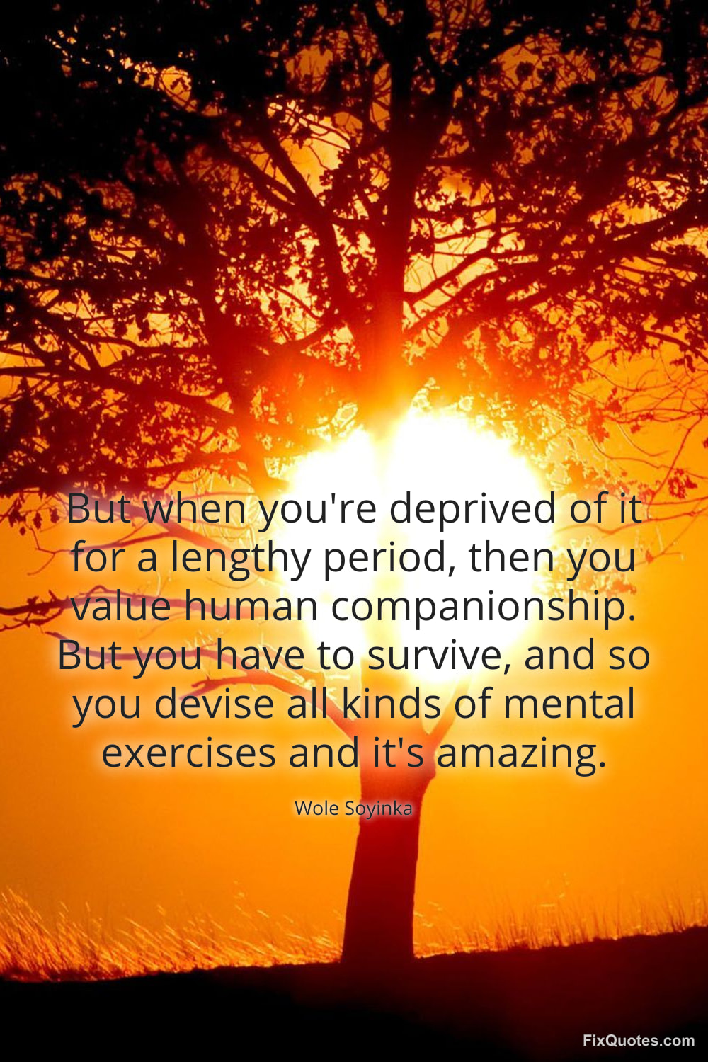 Soyinka, Wole. (2026, February 16). But when you're deprived of it for a lengthy period, then you value human companionship. But you have to survive, and so you devise all kinds of mental exercises and it's amazing. FixQuotes. https://fixquotes.com/quotes/but-when-youre-deprived-of-it-for-a-lengthy-160022/