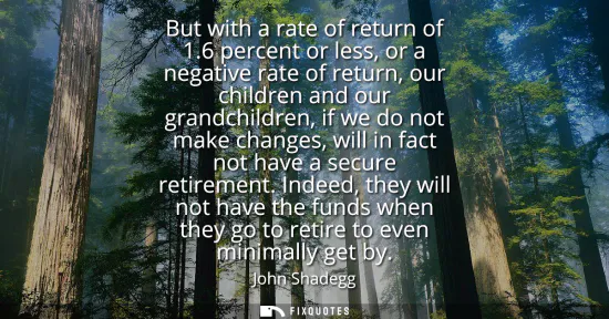 "But with a rate of return of 1.6 percent or less, or a negative rate of return, our children and our grandchildren, if we do not make changes, will in fact not have a secure retirement. Indeed, they will not have the funds when they go to retire to even minimally get by"