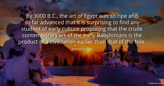 "By 3000 B.C., the art of Egypt was so ripe and so far advanced that it is surprising to find any student of early culture proposing that the crude contemporary art of the early Babylonians is the product of a civilization earlier than that of the Nile." FixQuotes, 18 Feb. 2026, https://fixquotes.com/quotes/by-3000-bc-the-art-of-egypt-was-so-ripe-and-so-78393/. Accessed 2 Mar. 2026.