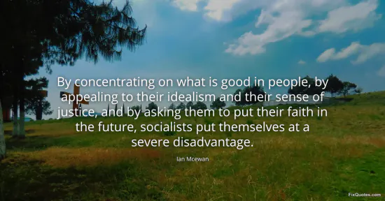 Mcewan, Ian. "By concentrating on what is good in people, by appealing to their idealism and their sense of justice, and by asking them to put their faith in the future, socialists put themselves at a severe disadvantage." FixQuotes. January 16, 2026. https://fixquotes.com/quotes/by-concentrating-on-what-is-good-in-people-by-121988/.