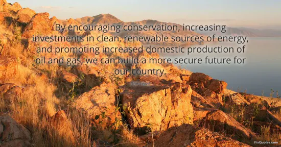 "By encouraging conservation, increasing investments in clean, renewable sources of energy, and promoting increased domestic production of oil and gas, we can build a more secure future for our country." FixQuotes, 16 Jan. 2026, https://fixquotes.com/quotes/by-encouraging-conservation-increasing-98668/. Accessed 12 Feb. 2026.