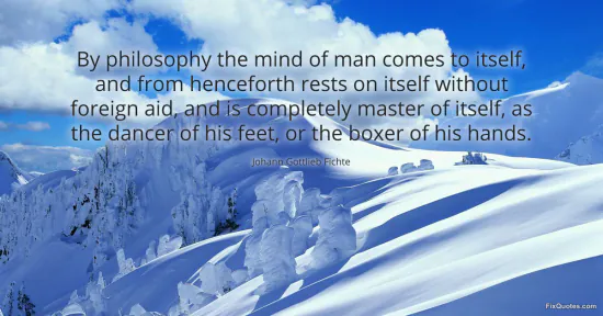 Fichte, Johann Gottlieb. "By philosophy the mind of man comes to itself, and from henceforth rests on itself without foreign aid, and is completely master of itself, as the dancer of his feet, or the boxer of his hands." FixQuotes. January 15, 2026. https://fixquotes.com/quotes/by-philosophy-the-mind-of-man-comes-to-itself-and-160509/.