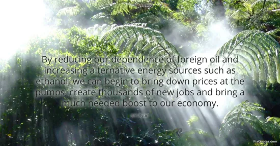 "By reducing our dependence of foreign oil and increasing alternative energy sources such as ethanol, we can begin to bring down prices at the pumps, create thousands of new jobs and bring a much needed boost to our economy." FixQuotes, 17 Jan. 2026, https://fixquotes.com/quotes/by-reducing-our-dependence-of-foreign-oil-and-57195/. Accessed 21 Feb. 2026.