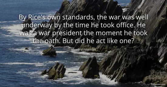 Fineman, Howard. "By Rice's own standards, the war was well underway by the time he took office. He was a war president the moment he took the oath. But did he act like one?" FixQuotes. January 17, 2026. https://fixquotes.com/quotes/by-rices-own-standards-the-war-was-well-underway-61773/.