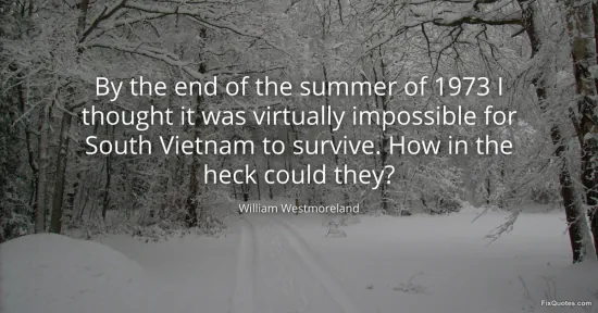 Westmoreland, William. (2026, January 16). By the end of the summer of 1973 I thought it was virtually impossible for South Vietnam to survive. How in the heck could they? FixQuotes. https://fixquotes.com/quotes/by-the-end-of-the-summer-of-1973-i-thought-it-was-116650/