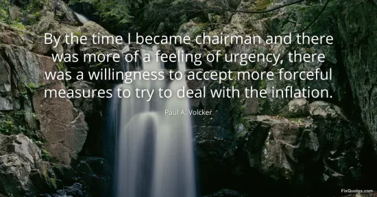 Volcker, Paul A. (2026, January 15). By the time I became chairman and there was more of a feeling of urgency, there was a willingness to accept more forceful measures to try to deal with the inflation. FixQuotes. https://fixquotes.com/quotes/by-the-time-i-became-chairman-and-there-was-more-83307/