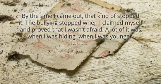 Harrison, Randy. "By the time I came out, that kind of stopped it. The bullying stopped when I claimed myself and proved that I wasn't afraid. A lot of it was when I was hiding, when I was younger." FixQuotes. February 18, 2026. https://fixquotes.com/quotes/by-the-time-i-came-out-that-kind-of-stopped-it-89258/.