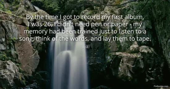Jay-Z. "By the time I got to record my first album, I was 26, I didn't need pen or paper - my memory had been trained just to listen to a song, think of the words, and lay them to tape." FixQuotes. January 15, 2026. https://fixquotes.com/quotes/by-the-time-i-got-to-record-my-first-album-i-was-151308/.