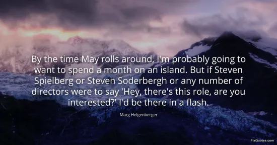 Helgenberger, Marg. "By the time May rolls around, I'm probably going to want to spend a month on an island. But if Steven Spielberg or Steven Soderbergh or any number of directors were to say 'Hey, there's this role, are you interested?' I'd be there in a flash." FixQuotes. January 16, 2026. https://fixquotes.com/quotes/by-the-time-may-rolls-around-im-probably-going-to-97097/.