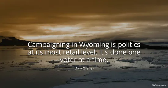 Cheney, Mary. "Campaigning in Wyoming is politics at its most retail level. It's done one voter at a time." FixQuotes. January 16, 2026. https://fixquotes.com/quotes/campaigning-in-wyoming-is-politics-at-its-most-92443/.