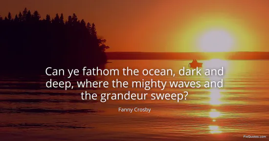 Crosby, Fanny. (2026, January 16). Can ye fathom the ocean, dark and deep, where the mighty waves and the grandeur sweep? FixQuotes. https://fixquotes.com/quotes/can-ye-fathom-the-ocean-dark-and-deep-where-the-128422/