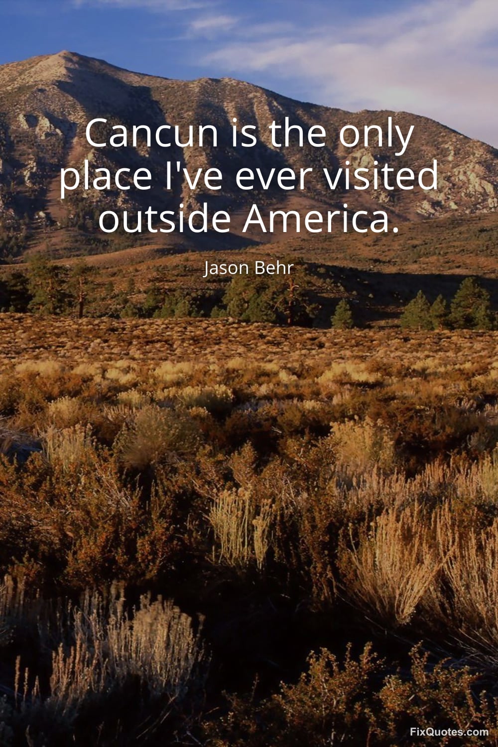 Behr, Jason. "Cancun is the only place I've ever visited outside America." FixQuotes. January 16, 2026. https://fixquotes.com/quotes/cancun-is-the-only-place-ive-ever-visited-outside-122484/.