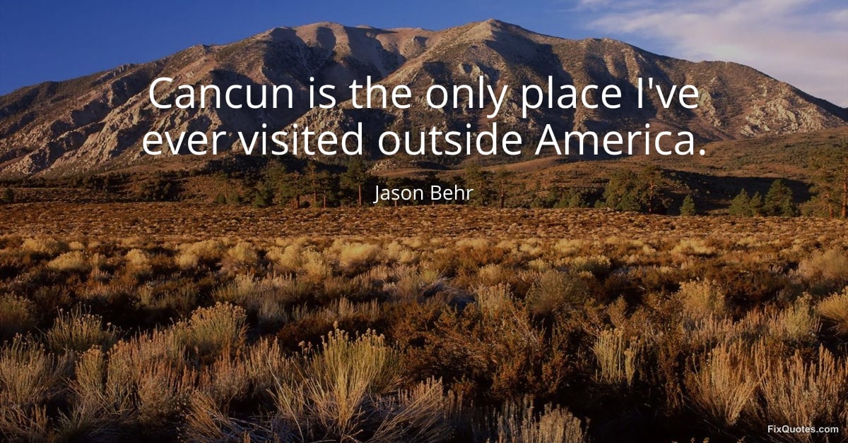 Behr, Jason. (2026, January 16). Cancun is the only place I've ever visited outside America. FixQuotes. https://fixquotes.com/quotes/cancun-is-the-only-place-ive-ever-visited-outside-122484/