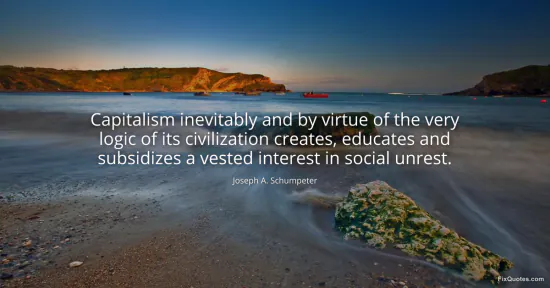 Schumpeter, Joseph A. (2026, January 17). Capitalism inevitably and by virtue of the very logic of its civilization creates, educates and subsidizes a vested interest in social unrest. FixQuotes. https://fixquotes.com/quotes/capitalism-inevitably-and-by-virtue-of-the-very-75219/