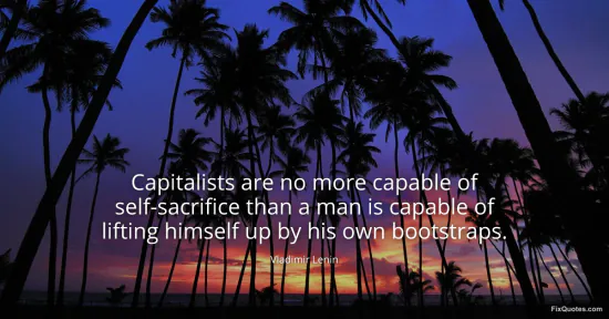 Lenin, Vladimir. (2026, January 18). Capitalists are no more capable of self-sacrifice than a man is capable of lifting himself up by his own bootstraps. FixQuotes. https://fixquotes.com/quotes/capitalists-are-no-more-capable-of-self-sacrifice-16274/