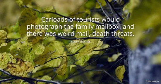 Thomas, Henry. (2026, January 17). Carloads of tourists would photograph the family mailbox, and there was weird mail, death threats. FixQuotes. https://fixquotes.com/quotes/carloads-of-tourists-would-photograph-the-family-67984/