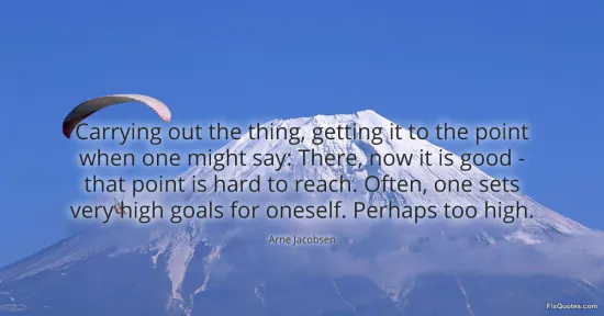 Jacobsen, Arne. (2026, January 17). Carrying out the thing, getting it to the point when one might say: There, now it is good - that point is hard to reach. Often, one sets very high goals for oneself. Perhaps too high. FixQuotes. https://fixquotes.com/quotes/carrying-out-the-thing-getting-it-to-the-point-40723/
