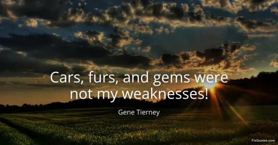 Tierney, Gene. (2026, February 19). Cars, furs, and gems were not my weaknesses! FixQuotes. https://fixquotes.com/quotes/cars-furs-and-gems-were-not-my-weaknesses-53392/