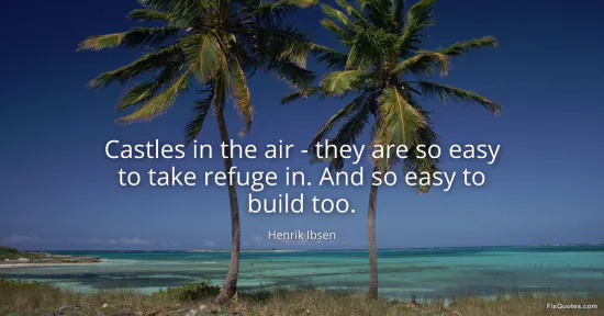 Ibsen, Henrik. (2026, January 17). Castles in the air - they are so easy to take refuge in. And so easy to build too. FixQuotes. https://fixquotes.com/quotes/castles-in-the-air-they-are-so-easy-to-take-32647/