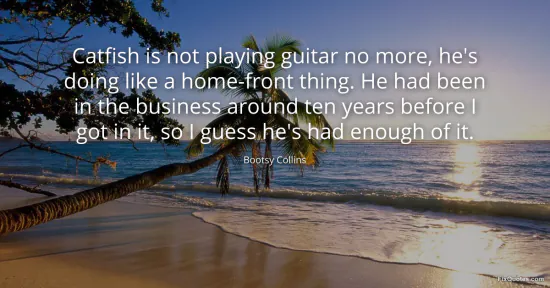 Collins, Bootsy. "Catfish is not playing guitar no more, he's doing like a home-front thing. He had been in the business around ten years before I got in it, so I guess he's had enough of it." FixQuotes. January 17, 2026. https://fixquotes.com/quotes/catfish-is-not-playing-guitar-no-more-hes-doing-73027/.