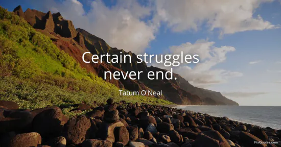 “Certain struggles never end” lands with the blunt economy of someone who’s stopped believing in neat third acts. Coming from Tatum O’Neal, it reads less like a motivational poster and more like a hard-earned admission: some battles don’t resolve, they recur. The line rejects the cultural script that pain is a plot device you “get over” once the credits roll. Instead, it frames struggle as maintenance rather than milestone.