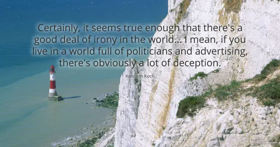 Koch, Kenneth. (2026, January 17). Certainly, it seems true enough that there's a good deal of irony in the world... I mean, if you live in a world full of politicians and advertising, there's obviously a lot of deception. FixQuotes. https://fixquotes.com/quotes/certainly-it-seems-true-enough-that-theres-a-good-69778/