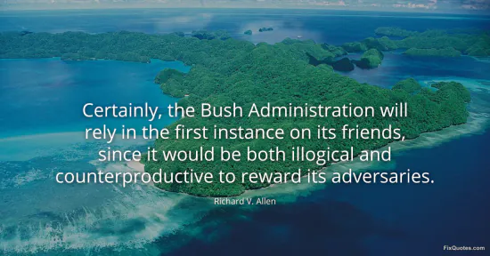 Allen, Richard V. "Certainly, the Bush Administration will rely in the first instance on its friends, since it would be both illogical and counterproductive to reward its adversaries." FixQuotes. January 16, 2026. https://fixquotes.com/quotes/certainly-the-bush-administration-will-rely-in-88180/.
