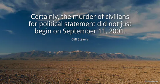 Stearns, Cliff. "Certainly, the murder of civilians for political statement did not just begin on September 11, 2001." FixQuotes. January 17, 2026. https://fixquotes.com/quotes/certainly-the-murder-of-civilians-for-political-48140/.