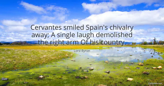 Byron, Lord. (2026, January 22). Cervantes smiled Spain's chivalry away; A single laugh demolished the right arm Of his country. FixQuotes. https://fixquotes.com/quotes/cervantes-smiled-spains-chivalry-away-a-single-20926/