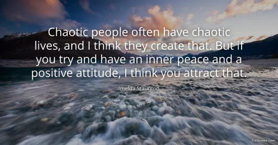 Staunton, Imelda. (2026, January 17). Chaotic people often have chaotic lives, and I think they create that. But if you try and have an inner peace and a positive attitude, I think you attract that. FixQuotes. https://fixquotes.com/quotes/chaotic-people-often-have-chaotic-lives-and-i-54799/